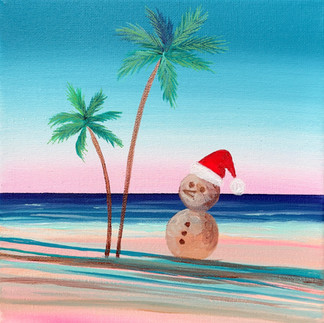 Living by the ocean, under big skies and golden light, has completely shaped how I see and create. So instead of winter scenes or familiar symbols, my paintings lean into warmth, movement, and openness. It’s my way of honoring this season through sunshine, color, and feeling—no matter how you personally experience it.
